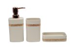 طقم اكسسوارات الحمام 3 قطع ، موزع صابون، حامل فرش اسنان وصينية، لون رمادي